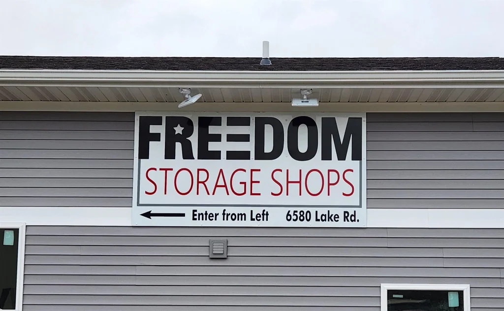 FSS Phase II - Freedom Storage Shops - Phase II offers four 1,250 sf units, one 1,450 sf unit and one 1,750 sf unit. Easily accessible and conveniently located on Lake Rd one mile north of the interstate. These condos are designed for use by small business, hobbyists, or store cars, boats, motorhomes. Why rent when you can own and build equity? Features include 14' ceiling height, 12x12 overhead door, finished drywall interior, 200 amp electrical service, energy efficient build, and secure and aesthetic environment. Personalize your space with Bathroom & Office upgrades or other available options. Condo fee of $100/month covers insurance, reserves and assures you won't deal with snow/mow.
